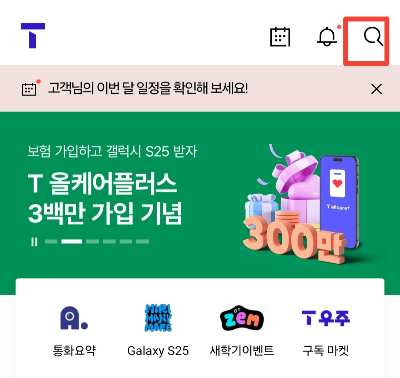 먼저 기본 앱으로 깔려 있는 'T WORLD' 앱을 실행 후 로그인 합니다.