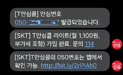 무료로 안심번호를 받는 사이트도 있지만 저는 그런 무료 사이트에도 개인정보 유출 가능이 있다고
