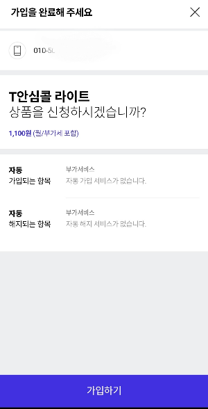 부가서비스가 5개 정도 나오는데 'T안심콜 라이트'를 선택하시면 됩니다.