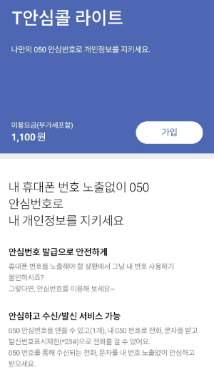 050 번호로 시작하는 안심번호 부가서비스로 매월 1,100원이 부가됩니다.